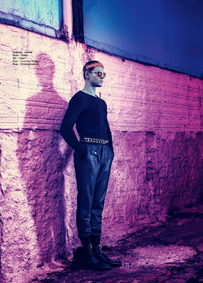 Dieter Truppel [WAY], em fotos de Fernando Mazza, styling de Mauricio Mariano & Alessandro Lazaro e make&hair de Liege Wisniewski, no editorial "Boy from Hell" da quinta edição de coleções da revista Kaltblut.